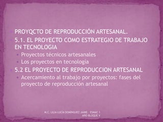 El documento describe las etapas de un proyecto de reproducción artesanal de coloreras. Inicialmente se identifica la necesidad de coloreras en la comunidad y los objetivos de ofrecer un producto de calidad, funcional y exclusivo. Luego se enumeran los recursos disponibles como materia prima, equipos y mano de obra requerida. Finalmente, el documento explica cada una de las etapas del proyecto, incluyendo el diseño, planificación, implementación y evaluación del mismo.