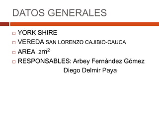 Este documento describe un proyecto de producción de cerdos en la vereda San Lorenzo en Cauca, Colombia. El proyecto compara los métodos tradicionales versus el uso de concentrados para la crianza de cerdos. El objetivo es establecer las diferencias productivas entre los métodos. Se detalla la inversión, crianza, alimentación, cronograma y ventas proyectadas. Las conclusiones son que la producción tradicional es viable económicamente y que las razas mejoradas se adaptan bien al medio cuando se usan métodos tradicionales.