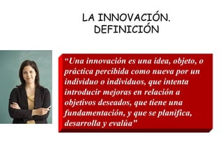Este documento proporciona pautas para la elaboración de proyectos de innovación educativa. Define la innovación y describe diferentes tipos. Explica las fases de un proyecto de innovación, incluyendo el diseño, adopción, implementación e institucionalización. Además, ofrece consejos sobre cómo identificar un problema, establecer objetivos, desarrollar la innovación propuesta, identificar beneficiarios y realizar una evaluación. En resumen, este documento sirve como guía para el desarrollo de proyectos de innovación educativa exitosos.