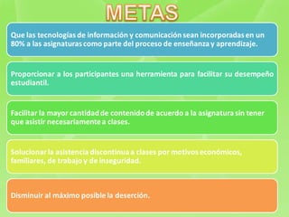 Este documento presenta un proyecto para mejorar el proceso de enseñanza y aprendizaje en un instituto de educación de adultos mediante el uso de tecnologías de información y comunicación (TIC). El proyecto capacitará a docentes y estudiantes en el uso de herramientas TIC como correo electrónico, Facebook, chats y blogs para enviar materiales y realizar el seguimiento del aprendizaje. Se llevará a cabo durante el año escolar 2013-2014 con una inversión de 897 bolívares.