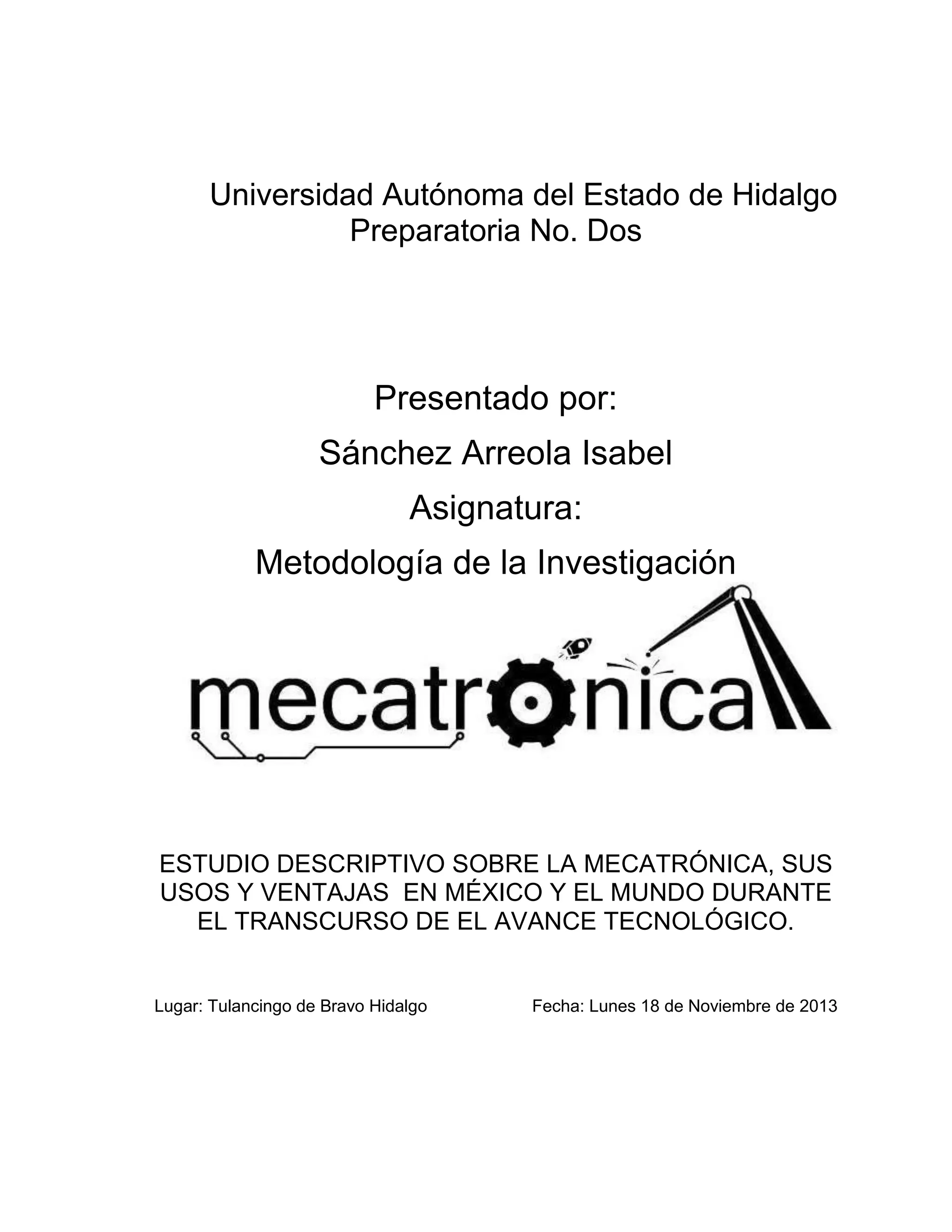 Este documento presenta un esquema tentativo para un proyecto de investigación sobre la mecatrónica. El proyecto analizará los conceptos básicos de la mecatrónica, su historia y evolución, los obstáculos para el avance tecnológico en México, y los beneficios de la mecatrónica. El cronograma de actividades incluye la elaboración del marco teórico, conceptual y referencial durante las primeras 4 semanas. El objetivo general es justificar los conceptos básicos de la mecatrónica y ob