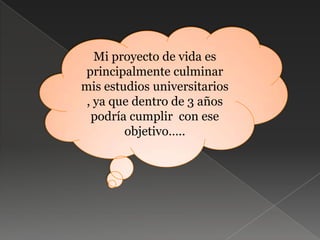 Mario desea culminar sus estudios universitarios en ingeniería de mercadeo dentro de 3 años. En 10 años, espera tener un título, posgrados en el extranjero y un trabajo estable como gerente general en una empresa prestigiosa en Quito, Guayaquil o Ambato. Planea emprender su propio negocio, crear una fundación para animales y personas necesitadas, y formalizar una familia para compartir gratos momentos con sus hijos.