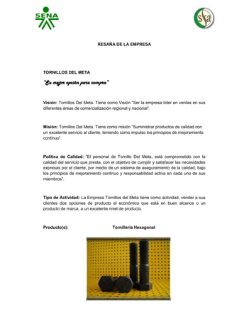 El resumen describe las prácticas empresariales del autor en Tornillos del Meta. El autor trabajó como asistente en inventario y archivo, aprendiendo sobre las operaciones de la empresa. Aunque tuvo algunos desafíos con su compañero de prácticas, el autor desarrolló sus habilidades y aplicó sus conocimientos de forma exitosa. La experiencia le ayudó a familiarizarse con el entorno laboral y fortaleció sus habilidades profesionales.