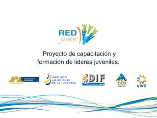 El documento describe un proyecto del gobierno estatal para capacitar y formar a jóvenes líderes a través de la organización RED JOVEN. El proyecto busca desarrollar habilidades de liderazgo social, formación humana y participación ciudadana mediante jornadas, campamentos, cursos y actividades comunitarias. Varias instituciones participan en la coordinación, selección, capacitación y seguimiento de los jóvenes.