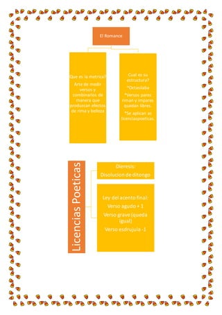 Abel Romeo Castillo es un poeta, historiador y periodista guayaquileño que estudió en Madrid y se destacó en la dirección de la Hoja Literaria de El Telégrafo. El documento también explica la métrica del romance en poesía, describiendo su estructura octosílaba y el uso de licencias poéticas. Además, incluye ejemplos de romances criollos que reflejan la cultura guayaquileña.