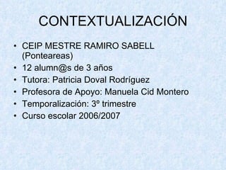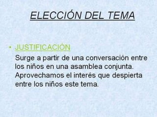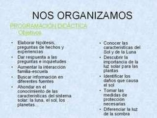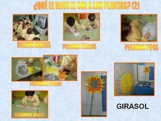Este documento presenta un proyecto escolar realizado por 12 estudiantes de 3 años de edad sobre el sol. El proyecto incluyó actividades como dibujar y escribir sobre el sol, recortar y pegar, armar maquetas, jugar con sombras y aprender sobre la importancia de usar gafas de sol. El objetivo fue corregir ideas previas erróneas de los estudiantes sobre el sol y enseñarles información correcta, como que el sol es una estrella y no una bola de fuego o bomba.