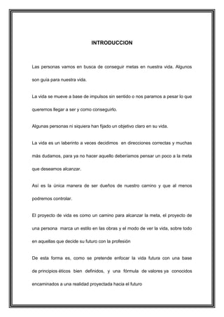 María José Angulo Bravo está realizando un proyecto de vida para aprobar el preuniversitario y obtener un título en Ingeniería de Mercadeo. Sus objetivos incluyen aprobar el preuniversitario, ser más dedicada en sus estudios, y aplicar los conocimientos aprendidos para tener éxito en su carrera laboral y ayudar a sus padres y su hija.