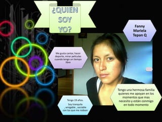 Esta persona desea convertirse en ingeniera ambiental y trabajar para una empresa pública aplicando lo aprendido en la universidad. Tiene el apoyo de su familia y le gusta pasar tiempo libre cantando, haciendo deporte y viendo películas. Sus debilidades incluyen falta de recursos económicos y posibles problemas familiares, pero trabajará duro para cumplir sus metas a pesar de los obstáculos.