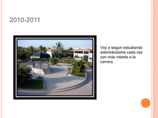 El documento contiene varios planes de vida de estudiantes para los próximos años. Un estudiante planea continuar su carrera y ayudar al negocio familiar. Otro planea terminar su carrera, ahorrar y eventualmente iniciar su propio negocio. Un tercer estudiante planea especializarse en un área de su carrera y encontrar trabajo al graduarse.
