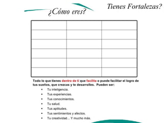 Permite basarse en como se debe realizar un proyecto de vida, en si solo es un ejemplo a seguir, porque como todo proyecto de vida se debe usar la imaginacion y creatividad...