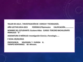 Este documento presenta el proyecto de vida de un estudiante llamado Gustavo Aldaz. Describe su situación actual, sus fortalezas y debilidades, y las personas e influencias que han sido importantes en su vida. Establece sus objetivos de convertirse en un chef profesional y trabajar en su propio restaurante. Explica los pasos que tomará para cumplir sus metas, incluido continuar sus estudios y esforzarse cada día para superarse a sí mismo. Concluye que la perseverancia y la confianza en sí mismo lo ayudarán a lograr sus