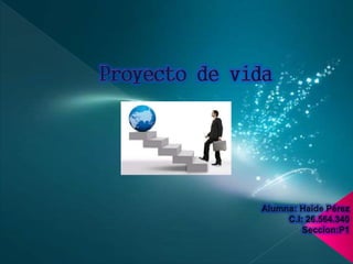 Un proyecto de vida es un plan para alcanzar las metas y aspiraciones de una persona a lo largo del tiempo mediante objetivos específicos y actividades. Incluye una visión del futuro deseado y los pasos necesarios para lograrla. La elaboración de un proyecto de vida requiere el autoconocimiento y se ve influenciada por factores culturales y sociales.