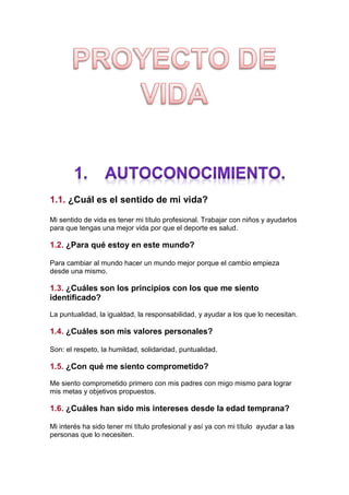 Este documento presenta una autobiografía y reflexión personal de Cristian Fabian Tuquerres Tipan, un estudiante de la Universidad de las Fuerzas Armadas ESPE. Describe su historia personal, valores, sueños e intereses. También incluye un análisis de sus fortalezas y debilidades, metas a corto y largo plazo para cumplir sus aspiraciones de ser un líder en la docencia y ayudar a los demás.