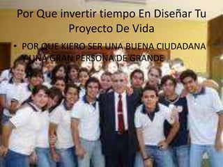 Angie desea ser una buena ciudadana y profesional. Su propósito es estudiar medicina, terminar la carrera en 5 años y trabajar en un hospital en 10 años. Sus valores incluyen el respeto, la amabilidad y la responsabilidad. Creó su proyecto de vida para planificar sus metas a futuro.