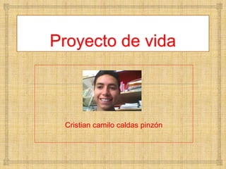Este documento es una autobiografía de Cristian Camilo Caldas Pinzón. Nació en Bogotá en 1999 y fue criado por padres que le dieron la oportunidad de estudiar. Actualmente está estudiando con el sueño de convertirse en auxiliar de vuelo para poder ayudar a su familia. Sus mayores influencias han sido Dios, su mamá y su papá. Su propósito en la vida es salir adelante a través de la educación.