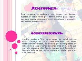 El documento presenta el proyecto de vida de Katherine Viveros, una estudiante que cursa el nivel de nivelación en el Instituto Tecnológico Superior José Ochoa León. Describe su historia personal y académica, sus fortalezas, debilidades, sueños y metas de convertirse en una tecnóloga en análisis de sistemas a través de terminar el nivel de nivelación y su carrera universitaria con el apoyo de su familia.