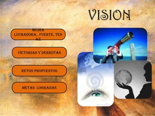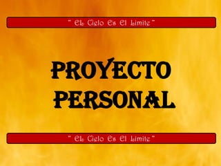 Este documento presenta el proyecto personal de Lizeth Parodi, una estudiante de 16 años de Perú. Su visión es ser una mujer fuerte que logra sus metas a pesar de victorias y derrotas. Su misión es dejar huella y hacer orgullosos a sus padres. A corto plazo, sus metas incluyen celebrar el cumpleaños de su madre y las fiestas navideñas con su familia. A mediano plazo, planea postular a la universidad y terminar el colegio. Y a largo plazo, sus metas