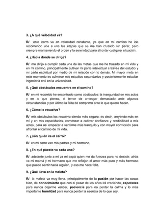 Este documento describe la vida de Johan Esteban López Jaramillo desde su nacimiento en 1995 en Zarzal hasta sus metas actuales de culminar sus estudios secundarios y estudiar ingeniería civil. Johan conduce su propia vida con la guía de su familia y de Dios, avanzando de manera constante pero serena hacia sus objetivos mientras enfrenta obstáculos como la inseguridad que busca superar siendo más seguro de sí mismo.