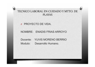 Este documento es una autobiografía de Enadis Frías Arroyo, una mujer de 24 años que vive en Colombia. Detalla su vida personal y familiar, incluyendo su hija de 4 años. También describe sus intereses de convertirse en psicóloga profesional y lograr sus metas a través de la educación. Incluye varios ejercicios de autorreflexión sobre sus fortalezas, debilidades, valores e identidad.