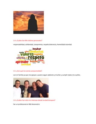 Este documento presenta el proyecto de vida de Christopher Rodriguez. Describe su autoconocimiento, incluyendo sus valores, intereses y metas personales. Su misión es convertirse en un profesional capacitado para ayudar a otros y lograr el éxito a través de la educación. Establece objetivos específicos para los próximos años que le permitirán graduarse de la universidad y cumplir su visión.