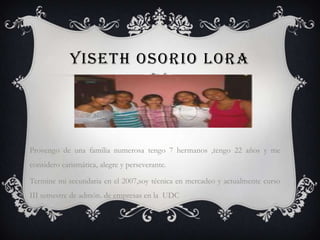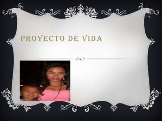 La autora presenta su proyecto de vida. Actualmente cursa su tercer semestre de Administración de Empresas y tiene como metas a corto plazo terminar su carrera y conseguir un mejor empleo, a mediano plazo formar una familia, y a largo plazo tener hijos y su propia empresa. Para lograr sus objetivos, se basará en su perseverancia, responsabilidad y el apoyo de su familia y amigos.
