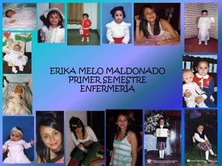Erika Melo Maldonado es una estudiante de primer semestre de enfermería. Su visión es graduarse en 4 años y ejercer como enfermera para servir a la comunidad, mientras continúa sus estudios con una especialización. Su misión es convertirse en una gran profesional a través de un proceso de aprendizaje, dedicación, amor y entrega. Actualmente vive con sus padres y una sobrina mientras estudia en la Fundación Universitaria de Ciencias de la Salud.