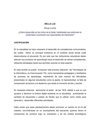 Este documento propone un proyecto para fortalecer las competencias comunicativas de los estudiantes utilizando las tecnologías de la información y la comunicación. El proyecto busca desarrollar habilidades como la comprensión lectora, la producción de textos y el uso de las herramientas tecnológicas. Se implementará mediante actividades lúdicas y pedagógicas que integren a los estudiantes, profesores y padres de familia.