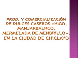 El documento presenta un proyecto de negocio para la empresa "Dulces Caseros la Morenita" que ofrecerá una variedad de dulces caseros elaborados de manera artesanal. El proyecto describe el proceso de producción de los dulces, los costos asociados, el mercado objetivo y la estrategia de distribución para llegar a clientes en diferentes localidades de la región de Lambayeque.