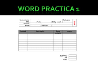 Este manual contiene 13 prácticas de la asignatura de Informática para Carlos Antonio Saldaña Martínez y Juan Angel Gómez Avilés del grado 2 grupo A. Cada práctica cubre un tema diferente relacionado con el uso de herramientas informáticas como Word.