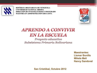 Este proyecto educativo tiene como objetivo principal integrar la familia y la escuela para fomentar valores humanos que permitan el desarrollo integral de los estudiantes. Se realizó un diagnóstico que identificó deficiencias en lectura y escritura, violencia familiar y falta de participación de los padres. El plan de acción incluye talleres de lectura, campañas de valores y actividades para involucrar a las familias con el objetivo de mejorar los problemas detectados. Se propone evaluar periódicamente los logros y diseñar nuevas estrategias