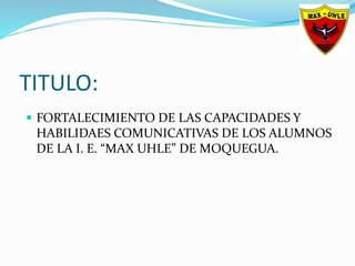 El proyecto busca fortalecer las habilidades comunicativas de los estudiantes de la I.E. 'Max Uhle' de Moquegua a través de un programa de televisión. Participan 230 alumnos de diferentes niveles educativos, quienes se involucran en la creación y emisión de contenidos, promoviendo la importancia de los medios de comunicación en la educación. El programa se emite quincenalmente y ha estado en funcionamiento desde 2012, enfocado en el desarrollo de diversas capacidades comunicativas.