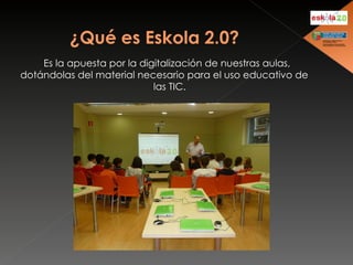 El documento propone la digitalización de las aulas mediante la dotación de material TIC, la capacitación del profesorado en su uso educativo y el fomento de metodologías participativas y trabajo colaborativo entre centros para mejorar la calidad de la enseñanza y reducir la brecha digital.