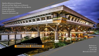 El documento presenta información sobre proyectos estructurales en concreto armado. Explica que un proyecto estructural contempla cálculos, el sistema constructivo elegido y los materiales a emplear. También incluye la memoria de cálculo estructural con planos, análisis de cargas y dimensionamiento de elementos como vigas y columnas. Finalmente, describe las etapas para elaborar un proyecto estructural, incluyendo la concepción, predimensionamiento, análisis estructural y memoria de cálculo.