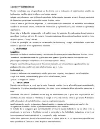 Este documento describe un proyecto científico de un club en una escuela ecuatoriana. El club tiene como objetivo principal enseñar a los estudiantes sobre ciencias naturales a través de experimentos sencillos. El club busca desarrollar habilidades como la creatividad, la curiosidad y el pensamiento crítico de los estudiantes. El documento proporciona detalles sobre la escuela, el club, sus objetivos y la importancia de enseñar ciencias a través de la experimentación activa.