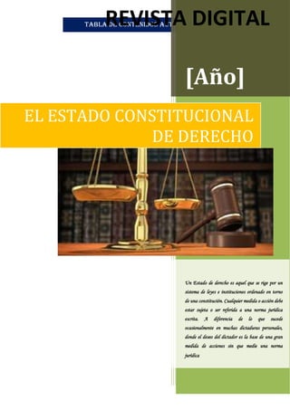 Este documento trata sobre el Estado Constitucional de Derecho. Explica conceptos previos sobre el Estado, incluyendo Estados antiguos como Egipto y Grecia. También describe el surgimiento del Estado moderno a partir de la Revolución Francesa, con características como un poder central fuerte y la creación de instituciones administrativas y financieras. Finalmente, analiza el ser humano como ser social y la evolución del concepto de sociedad.