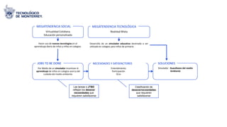 El documento describe un simulador educativo destinado a niños de primaria para enseñarles sobre el cuidado del medio ambiente. El simulador utilizaría tecnologías como procesadores gráficos, imagen 3D y redes masivas para ofrecer una experiencia interactiva y atractiva visual y sonoramente. Los niños aprenderían colocándose en diferentes situaciones ambientales y resolviendo problemas de forma lúdica, mientras son guiados por un profesor. El simulador estaría disponible en internet y se instalaría en las computadoras de los