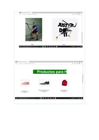 Este documento presenta un proyecto final de estudiantes sobre el desarrollo de una página web de venta de ropa y accesorios deportivos. El proyecto incluye objetivos, resultados de aprendizaje, actividades y contenidos como capturas de pantalla y código HTML, CSS y PHP para crear la página web con diferentes secciones, productos y estilos. El proyecto fue desarrollado por dos estudiantes para su tercer semestre bajo la supervisión de un docente.