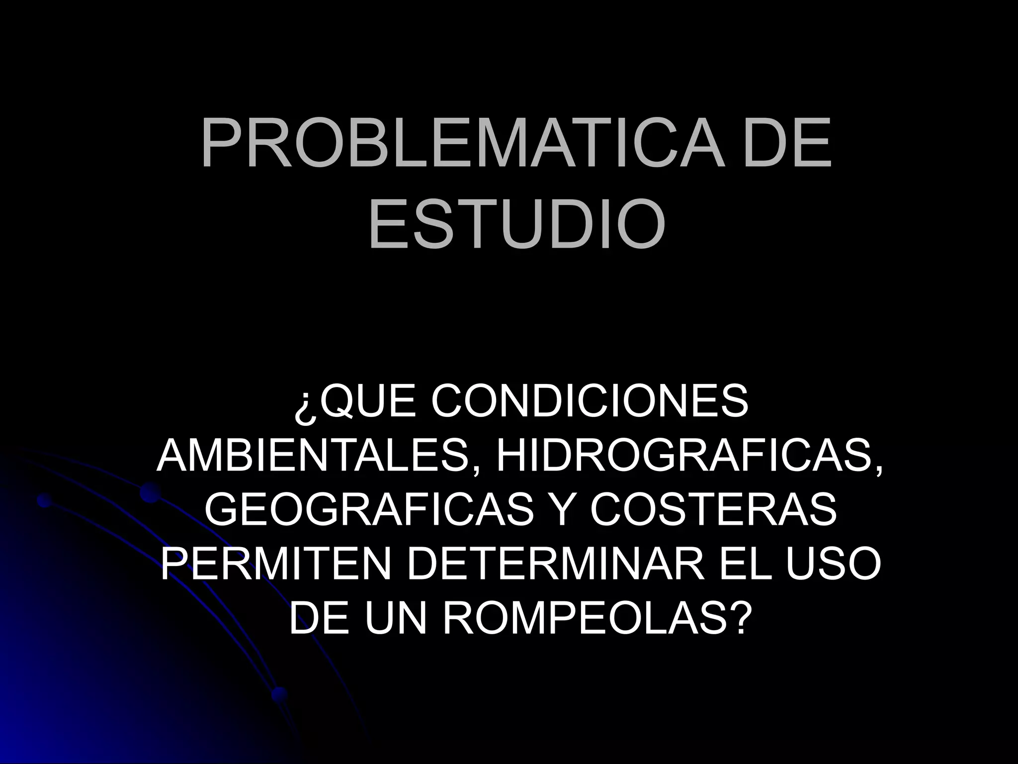 La construcción de rompeolas requiere considerar las condiciones ambientales, hidrográficas, geográficas y costeras para determinar su ubicación adecuada y evitar afectar ecosistemas. Un rompeolas propuesto en Perú podría alterar las corrientes y áreas de desove de peces, afectando la pesca local. Estudios pasados analizaron cómo rompeolas históricos en el Reino Unido fueron diseñados para proteger puertos desde 1600 en adelante, considerando factores como la geografía
