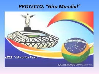 Este proyecto propone utilizar el Mundial de Fútbol de 2014 como disparador para un trabajo interdisciplinario entre Educación Física y otras áreas. Los objetivos incluyen fomentar la práctica deportiva, comprender las reglas y el deporte como fenómeno social, utilizar redes sociales para comunicación e investigación, y desarrollar estrategias de búsqueda y organización de información. El proyecto comenzará con consignas sobre el tema, luego los estudiantes guiarán la búsqueda de información adicional