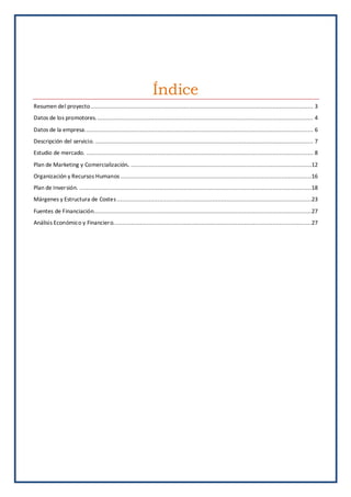 1. El documento presenta un proyecto para una academia de formación llamada ACJ Computers S.L. que ofrecerá una gran variedad de cursos en diferentes modalidades como presencial, online y a domicilio. 2. Los promotores son José Gregorio Hernández Rodríguez y Daniel Serafin, que aportarán capital igual al 50% cada uno. 3. Se describen aspectos como el estudio de mercado, la competencia, los clientes, proveedores y el plan de marketing y comercialización.