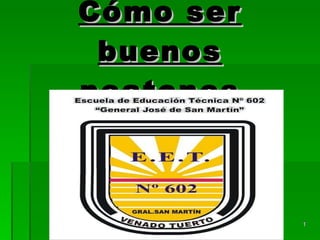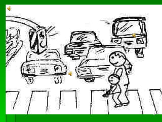 El documento ofrece consejos para ser buenos peatones, incluyendo cruzar por la senda peatonal, no confiarse de la prioridad de paso, y estar atento a vehículos estacionados o semáforos. También recomienda no cruzar si se aproxima un vehículo, no soltar a los hijos al cruzar, y prestar atención a las entradas y salidas de autos. El 58.5% de accidentes de peatones ocurren al cruzar fuera de la senda peatonal.