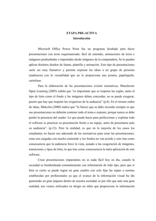 Este documento presenta un taller sobre la elaboración de presentaciones exitosas utilizando Microsoft PowerPoint. El taller se llevará a cabo de forma virtual a través de una wiki y está dirigido a estudiantes entre 13 y 16 años. El objetivo es enseñarles a crear presentaciones que sigan las normas de diseño y así puedan defender con éxito sus proyectos de bachillerato.