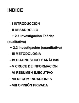 El documento presenta los resultados de una investigación sobre las relaciones sin compromiso formal. Se aplicó una encuesta a 30 hombres y 30 mujeres de 15 a 40 años, con preguntas sobre sus experiencias con relaciones abiertas y su opinión sobre el amor sin compromiso. Los resultados mostraron que ambos géneros tienen miedo a ser lastimados, pero los hombres ven estas relaciones más casualmente. Las mujeres no creen en el amor sin compromiso y valoran más los sentimientos. El documento propone trabajar con universidades para formar ciudadanos con mejores valores y redu