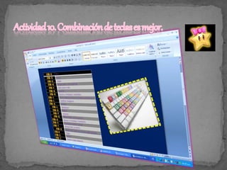 Este documento presenta las actividades y prácticas realizadas por Alejandra Rodríguez Padilla en su clase de Informática. Incluye 56 actividades organizadas en temas como conocer Word, edición, revisión, formato y macros. También describe 23 prácticas enfocadas en configurar opciones de menús y características de documentos electrónicos. Finalmente, presenta temas adicionales sobre almacén, abarrotes y uso de funciones en Excel.