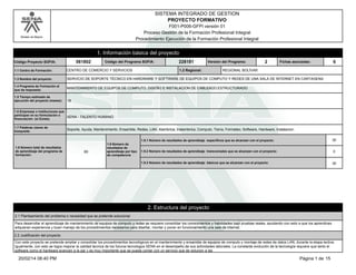 Este documento describe un proyecto formativo para montar un servicio de soporte técnico en hardware, software y redes para una sala de internet. El proyecto tiene una duración de 18 meses y busca solucionar la necesidad de consolidar conocimientos prácticos en mantenimiento de equipos y redes. El proyecto beneficiará a instituciones educativas, empresas y la comunidad en general y mejorará el rendimiento de productos y servicios ofrecidos por los aprendices. El proyecto involucra actividades como diseñar, montar y mantener la red,