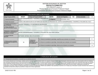 Este documento describe un proyecto para desarrollar sistemas de información que agilicen los procesos del Centro Agroempresarial y Desarrollo Pecuario del Huila. Actualmente, los procesos se realizan de forma manual lo que genera tiempos de respuesta lentos. El proyecto busca definir la información a sistematizar, diseñar prototipos de software y bases de datos, y desarrollar e implementar un sistema de información que facilite el control y seguimiento en la organización.