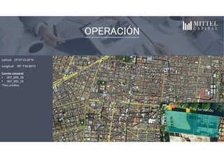 El proyecto implica la compra y construcción de una plaza de servicios en dos predios en la colonia La Esperanza, Cuauhtémoc, con una superficie total de 905 m2 y una superficie rentable de 685 m2. Se estima un costo total de $28,535,000, con un CAP rate bruto del 9.72% y una TIR del 11.9%. El inversionista asumirá los riesgos de construcción y arrendamiento, buscando maximizar el retorno a través de inquilinos premium y condiciones de arrendamiento favorables.