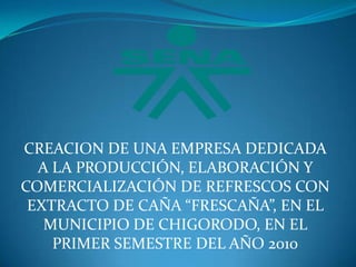 Los autores proponen crear una empresa llamada "Frescaña" en Chigorodó para sembrar, elaborar y comercializar refrescos de caña de alta calidad. El proyecto beneficiaría a la comunidad local y a las escuelas, tiendas y supermercados. Se sembrarían 3,000 matas de caña en una hectárea y se construiría una planta procesadora. Se requerirían $26,5 millones para la tierra, mano de obra, equipos e insumos. El proceso productivo tomaría 11 días y el