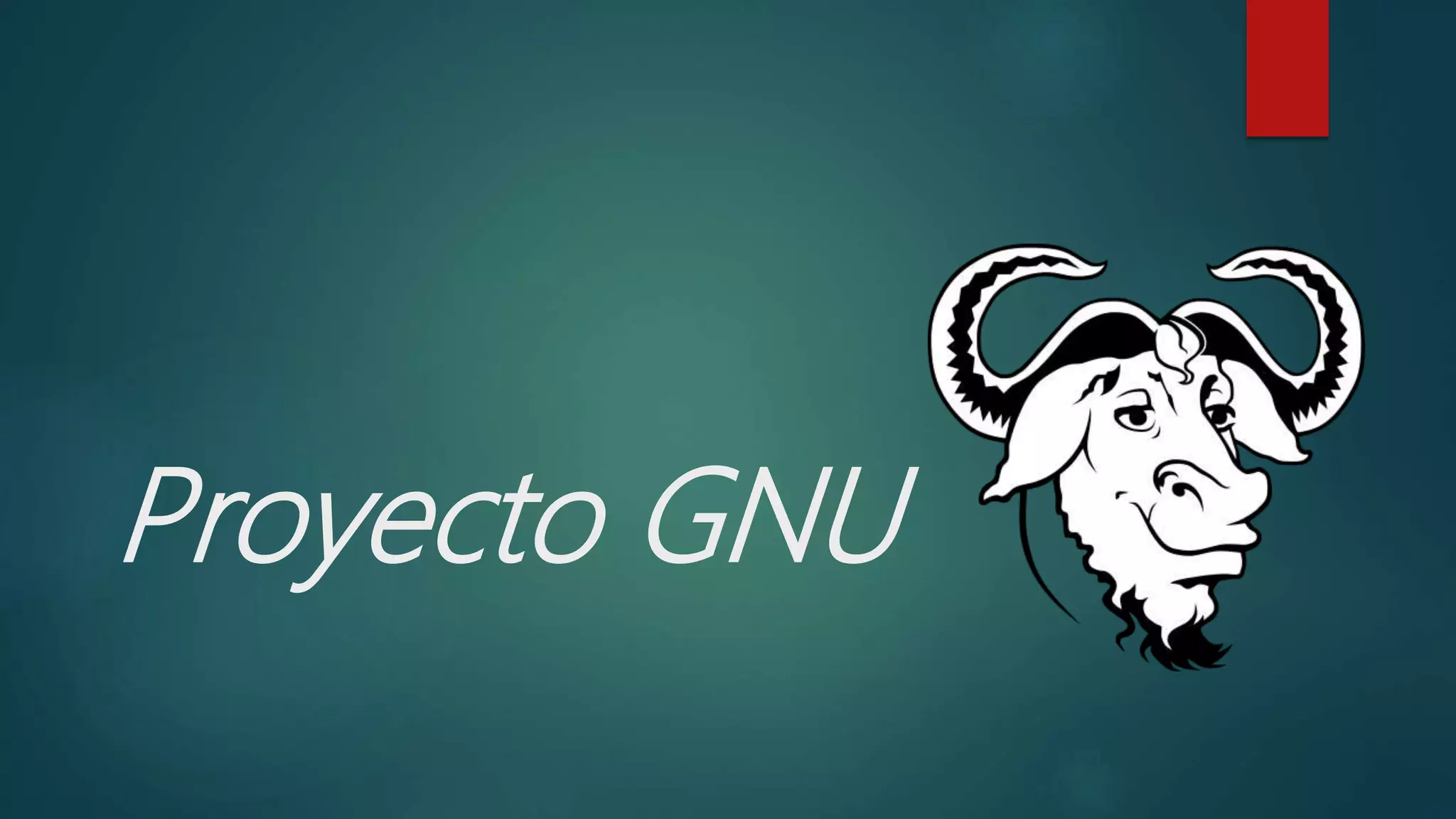 El Proyecto GNU fue fundado en 1983 por Richard Stallman para crear un sistema operativo de software libre compatible con Unix pero que respetara la libertad de los usuarios. Stallman estableció la Free Software Foundation en 1985 para administrar legal y organizativamente el proyecto y promover el software libre. El nombre GNU es un acrónimo recursivo que significa "GNU's Not Unix" para indicar que aunque se inspiró en Unix, GNU es fundamentalmente diferente al ser software libre.