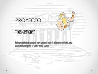 Este proyecto para alumnos de 5 años se centra en la civilización griega. A través de cuentos, películas y seres mitológicos, los estudiantes explorarán la cultura helena y trabajarán en todas las áreas del currículo. Actividades dentro y fuera del aula incluyen la decoración del salón, búsquedas de información, y una visita al museo arqueológico. El producto final será unas olimpiadas cooperativas con la ayuda de padres y maestros.